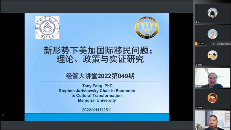 11月25日,p站 人力资源管理研究所、江苏省人力资源发展研究基地和中国员工关系管理研究省优秀创新团队邀请到加拿大纽芬兰纪念大学讲席教授、四川师范大学客座教授、新泽西州立大学研究员方涛在线上为p站 师生作了题为“新形势下的美加国际移民问题:理论、政策与实证研究”的精彩学术报告。本次讲座由教授胡恩华主持,相关教师以及博士生和硕士生参加了这次专题讲座。