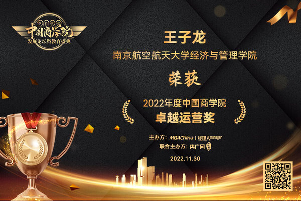 p站 副院长王子龙教授荣膺“中国商学院卓越运营奖”。