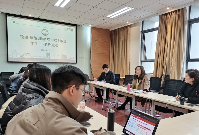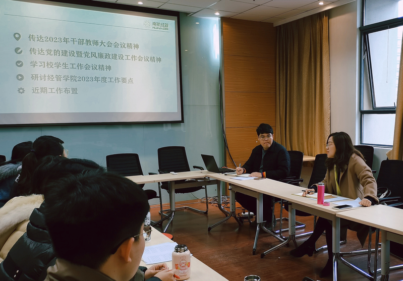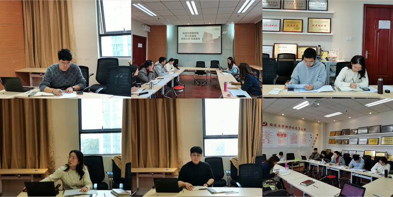 胡苹首先对三次会议精神进行了领学。她指出,学校干部教师大会、党的建设暨党风廉政建设工作会和校学生工作会为我们指明了2023年工作的方向,一要提高政治站位,从学校工作大局出发,结合p站 实际,有的放矢、创造性地谋划工作,增强工作的系统性。二要聚焦工作重点难点,坚持问题导向,花大力气解决好学风问题和就业问题,将思想引领与解决学生突出问题紧密结合,增强工作的有效性。三要坚持创新驱动发展,探索本研贯通、一体推动的思政模式,持续打造思政工作品牌,增强工作的协同性。四要不折不扣抓落实,坚持“理论学习、深入学生、研用一体”,必须结合学院实际落实落细,拿出真招实招,增强工作的针对性。最后,她强调,“牢记育人之责、落实育人之任、抓好育人之能”,必须时刻牢记育人初心使命,必须带着思考、感情和责任工作,为培养一流的经济与管理类人才做出更大的贡献。