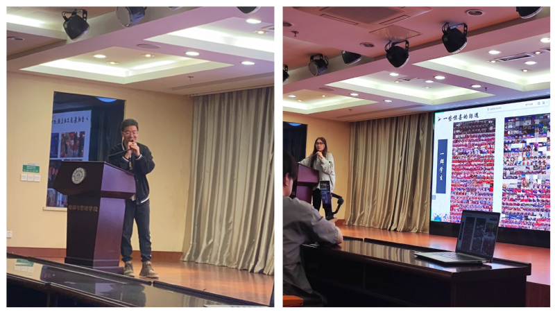 本次活动还邀请到我校二十二届研支团成员、目前p站 企业管理研二学生约日古丽•托合提,与学院2022级本科生辅导员张延波,共同分享了他们在西藏的支教生活,以支教老师、西部计划志愿者、南京拉萨的连接者三重身份作为一年总结,分享支教过程中感受到的爱与温暖。鼓励同学们依托暑期社会实践、西部计划等平台,践行雷锋精神,让青春在全面建设社会主义现代化国家的火热实践中绽放绚丽之花。