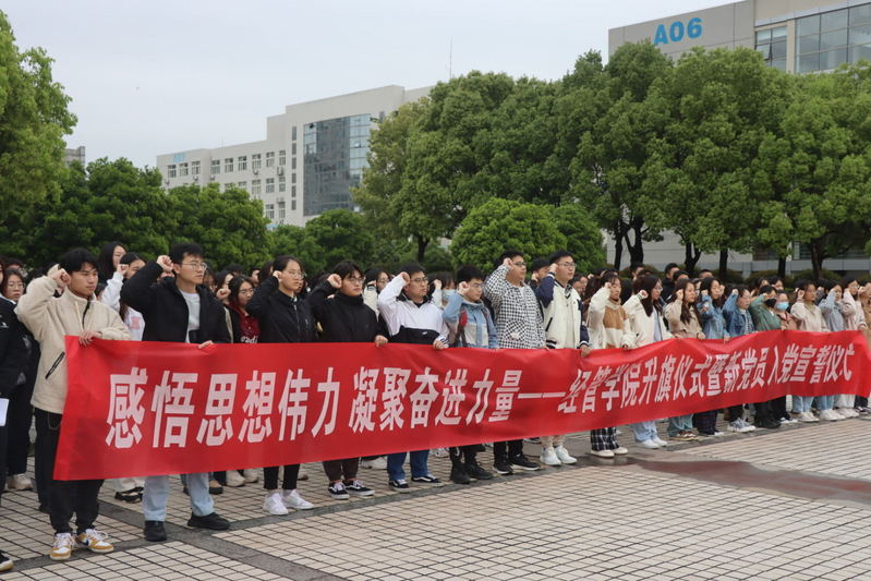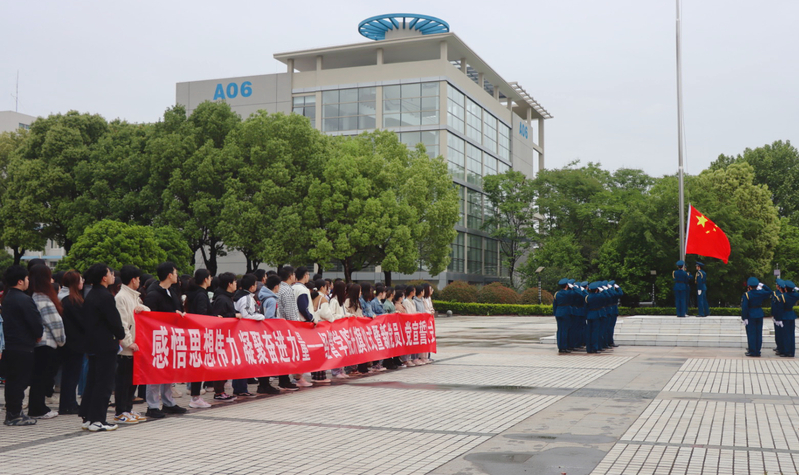 为深入开展习近平新时代中国特色社会主义思想主题教育,p站 于4月24日在国旗广场举行“感悟思想伟力 凝聚奋进力量”升旗仪式暨新党员入党宣誓仪式。学院党委副书记胡苹、辅导员代表、全体学生党员、发展对象、入党积极分子参加活动。