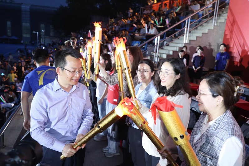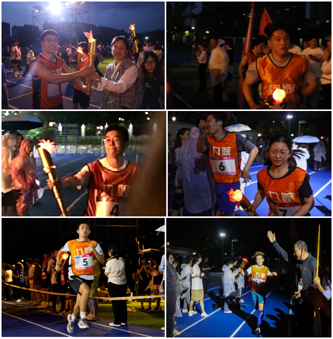 校党委副书记刘宇雷为本次比赛致开幕辞。比赛开始前,刘宇雷点燃火炬,传递至各学院党委副书记。胡苹将火炬传至学院第一位运动员丰超手中,参赛队员飞奔而出,努力奔跑。在14名队员的接续努力和全体观赛同学的加油呐喊下,学院代表队率先完成比赛,继2022年火炬接力赛后再度蝉联冠军席位。