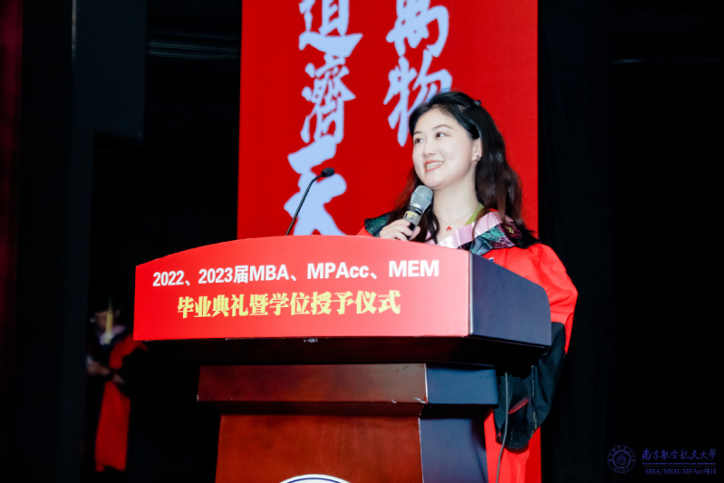 教师代表蔡静雯老师祝贺大家顺利毕业的同时,强调了研究生期间案例开发的价值和意义。南航在全国百篇优秀管理案例中取得优异成绩,是MBA学子共同奋进的最好证明。蔡老师表示每一位毕业生坚定的信念与使命担当,为学弟学妹做出了表率!