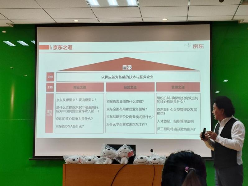 樊总的讲座以京东的商业之道为始,详细地介绍了京东近二十年来的发展历程,明确指出了京东当前的定位是一家以供应链为基础的技术与服务企业。接着,樊总谈到了京东的经营之道,介绍了京东目前布局的零售、物流、科技、健康、保险、产发、工业等九大业务板块。最后,樊总重点阐述了京东的管理之道,强调了京东以客户为先的价值观始终没变以及企业内部对“价值观第一,能力第二”人才标准的深刻理解,还通过一系列事例说明了京东丰厚的员工福利待遇。