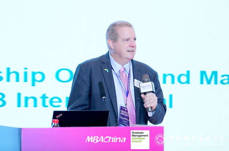 AACSB执行副总裁、全球首席成员官、亚太区首席执行官Geoff Perry对AACSB的背景和概况进行介绍,详细说明了认证标准和决策,并为商学院的发展提出建设性意见。