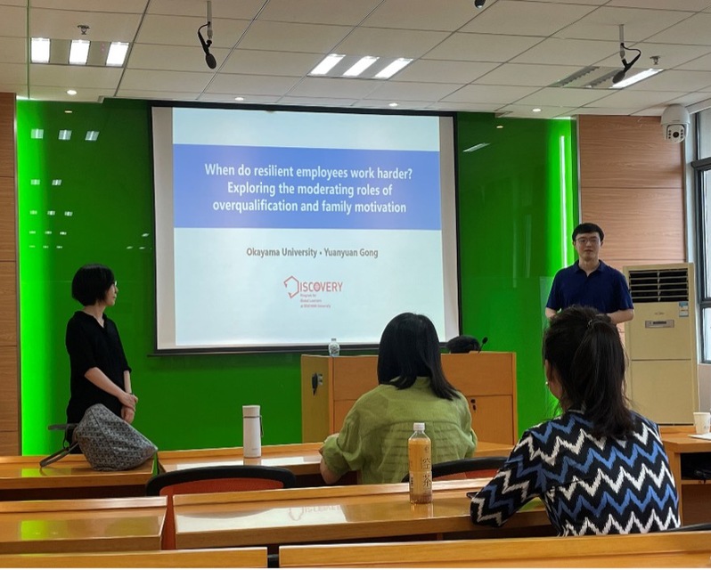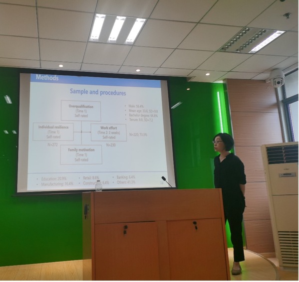 7月18日,p站 人力资源管理研究所邀请到日本冈山大学副教授龚元元在学院702会议室为p站 师生作了题为“When do resilient employees work harder? Exploring the moderating roles of overqualification and family motivation”的精彩学术报告。本次报告由青年教师刘奂辰主持,胡恩华、李媛,蔡静雯等教师以及博士生和硕士生参加了此次学术报告活动。
