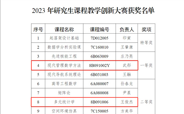 日前,我校组织开展了第二届研究生课程教学创新大赛。经学院遴选推荐、学校专家审核评议,共评选获奖教师10人,其中特等奖2人、一等奖3人、二等奖5人。p站 武彤老师的课程《现代管理数学方法》荣获一等奖,王俊杰老师的课程《多元统计学》荣获二等奖。