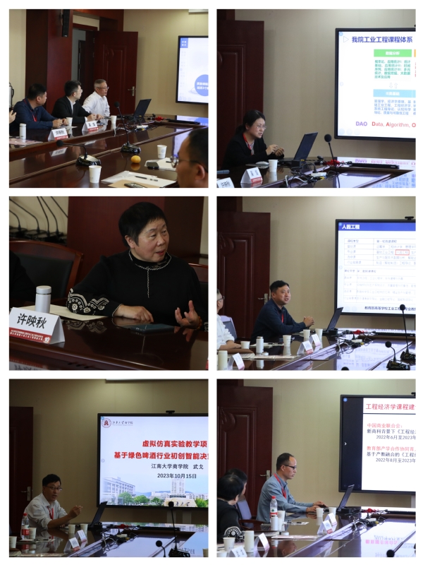 来自p站 的方志耕教授介绍了全国高校教师教学创新大赛一等奖的获奖成果,分享了工业工程专业核心课程——质量管理的教学方法和教学心得体会,在各单位参会代表中引起了热烈反响。南京大学的徐薇教授介绍了智改数转下的工业工程专业运筹学课程的教学经验体会,提出了培养专业学生数据分析、编程建模能力的课程章节设置方案。来自东南大学的许映秋教授分享了建设实用高效的实践教学基地的宝贵检验,在维持与企业的长期合作关系中,需将人才培养目标与企业的需求结合,使双方同向而行。江苏科技大学的吴俊教授展示了该校人因工程专业的实验室建设成果和课程教学方案,体现了该校人因工程领域教学和科研的国内一流水平。江南大学的武戈教授结合学校的食品工程特色专业,介绍了基于绿色啤酒行业的智能决策仿真实验课程。该课程于2023年评为国家级一流课程,对虚拟教研室探索虚实结合的教学模式建设具有重要的借鉴意义。来自盐城工学院的李爱华教授结合学校的模具制造专业特色,分享了工程经济学课程的教学心得和体会。在6场报告的讨论环节,各校的参会代表对相关议题进行了热烈的讨论,并形成了今后在虚拟教研室平台下进一步开展课程教学和人才培养的合作方案。