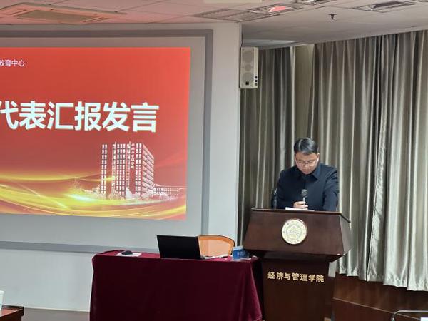 城建集团奚延虎、国资集团周玲玲、人才集团戴涛、旅康集团张彭建分别作为小组代表进行汇报发言,结合自身工作,分享学习心得体会。