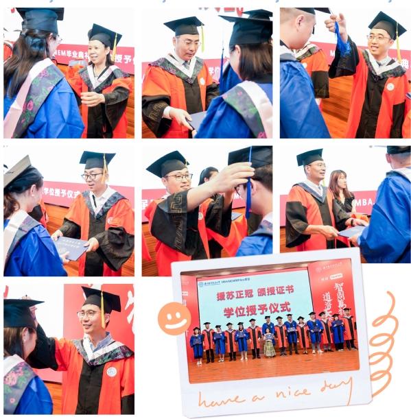 在庄严的学位授予仪式上,导师代表为全体毕业生援苏正冠、颁授证书,并与毕业生合影留念。充满仪式感的拨穗,象征着同学们将开启新征程,蓄力向未来!