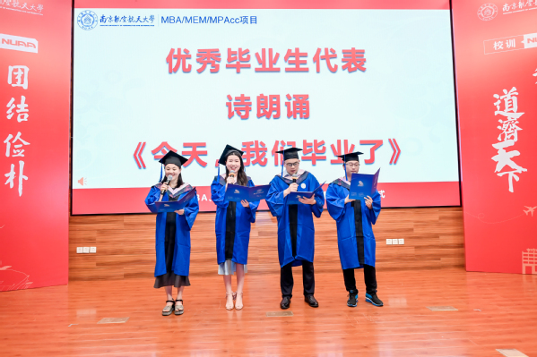 毕业典礼在庄严的国歌声中拉开帷幕。研究生院副院长、学位办主任王英向顺利取得硕士学位的全体2024届毕业生表示热烈的祝贺!她希望同学们永远不要忘了自己是“南航人”。无论身在何方,一定要有“南航元素”和“经管元素”,始终牢记校训与院训,适应新质生产力发展对人才的要求,做有担当、有境界、有责任的南航人,希望全体毕业生可以“怀揣诗篇,心向远方”!