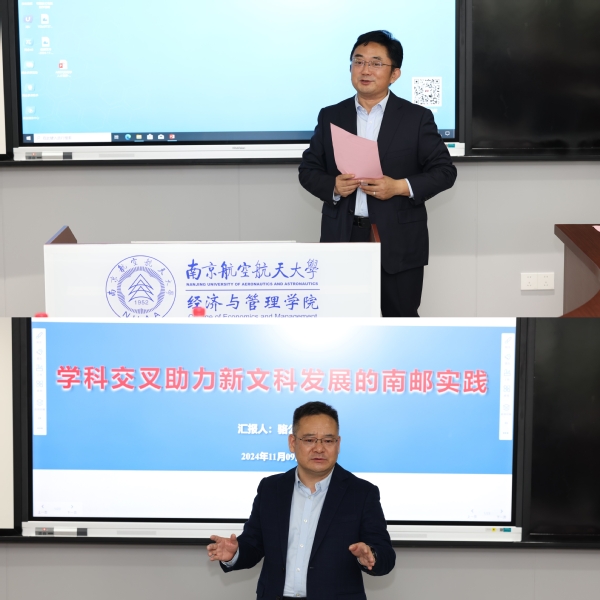院长(院友)论坛主题为“AI时代p站 高质量发展”,会议由p站 教授周德群主持。南京邮电大学社会科学处处长骆公志作“学科交叉助力新文科发展的南邮实践”主旨报告,提出“交叉融合信息学科特色优势,打造具备鲜明特征的人文社科研究体系”。