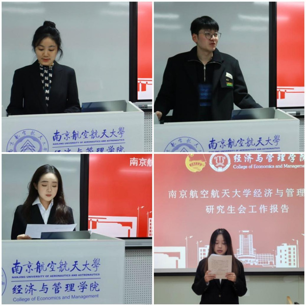 张瀚茹、李时铭分别代表校学生会、校研究生会致辞,并向大会的召开致以热烈的祝贺。董丹李洋代表第三十四届学生会主席团以“聚力青春之志,践行青年之为,在建设特色鲜明的一流p站 进程中践行青春使命”为题作工作报告。关峪萱代表第二十二届研究生会主席团作以“经世致用创一流 ,同心协力筑经彩”为题的工作报告。