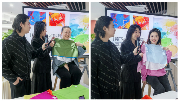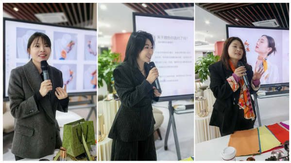 此次派对内容涵盖了个人色彩鉴定、基础护肤、彩妆技巧、丝巾搭配技巧等多个方面。专业的美妆Helen老师通过精心设计的教案,结合老师们的皮肤特点和职业化妆需求,通过邀请师生现场演示和互动教学的方式,运用专业鉴定的色卡模板帮助师生们快速找到属于自己品味风格,搭配适合自己的色彩,开始更快捷的变美蜕变旅程。