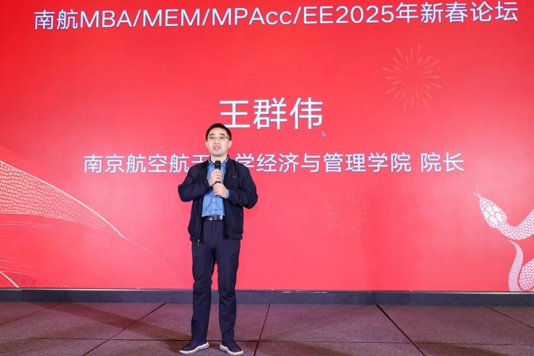 南航p站 院长王群伟向莅临现场的各位嘉宾表示了最诚挚的欢迎,并致以新春的美好祝福。王群伟院长充分肯定了南航MBA联合会在2024年的工作成果,对全体成员的辛勤付出与努力给予了高度评价。同时着眼于 2025 年,王群伟院长也提出了新的期许,鼓励联合会在未来的工作中继续奋进,取得更加优异的成绩。