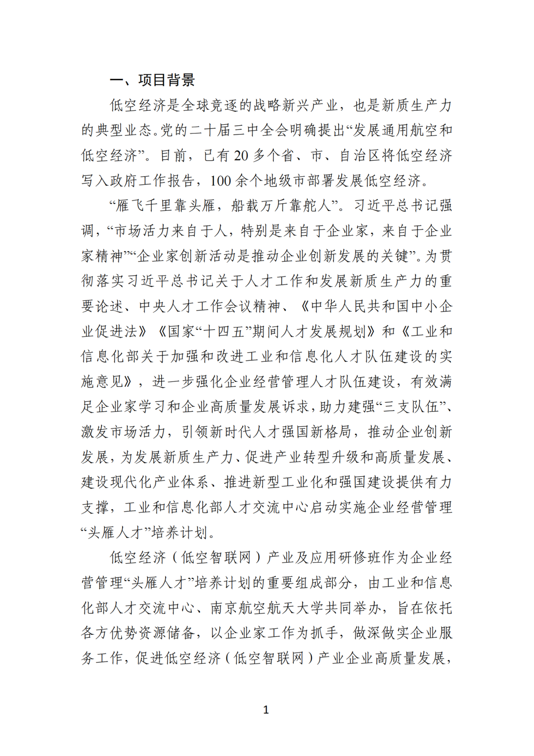 招生简章 | 企业经营管理“头雁人才”培养计划 2024年度低空经济(低空智联网)产业及应用研修班学员选拔培养方案