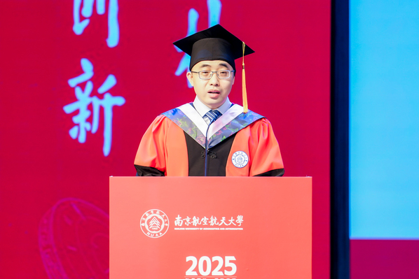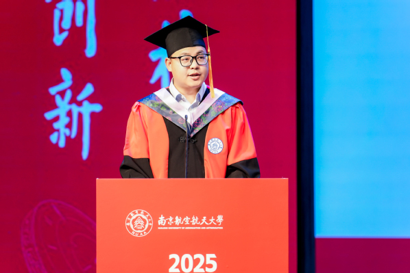 奋楫扬帆,续写华章。2025届毕业生代表丁毓敏、王一鸣和刘克,先后上台发言,回望在南航流光淬炼的求学岁月,感恩母校赋予的翱翔之力。