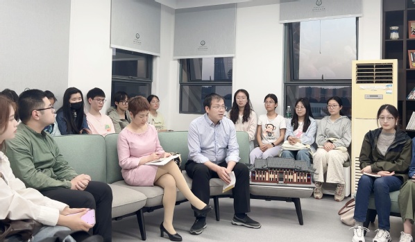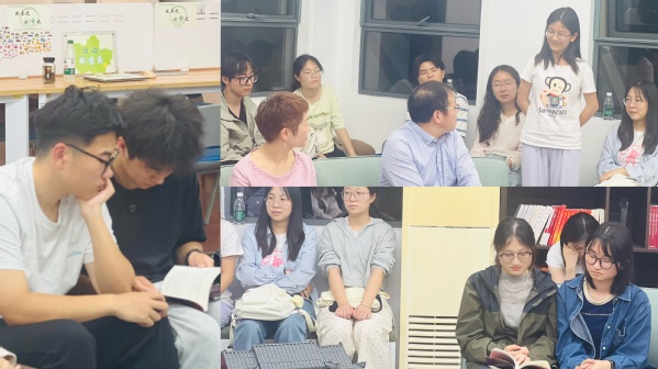 师生交流环节,现场气氛热烈。本研学生代表在两位老师的领读启发下,踊跃分享读书心得。同学们结合自身专业知识,就数字贸易的未来、中小企业在中美关税影响下的发展等话题展开深度交流。