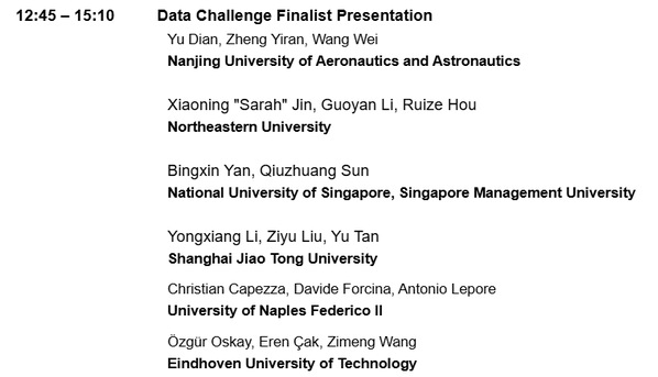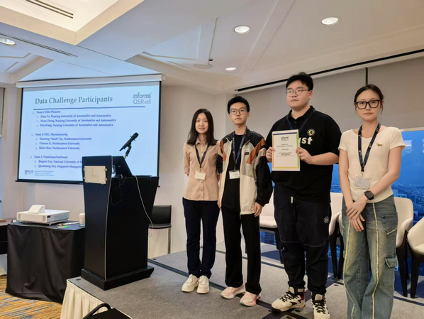 2025年运筹学与管理科学学会质量、统计与可靠性分会(INFORMS Conference on Quality, Statistics & Reliability, ICQSR 2025)于6月30日至7月3日在新加坡举行。该会议是全球运筹学和管理科学领域的顶级学术盛会,由国际运筹学与管理科学协会和新加坡国立大学联合举办。p站 学生郁典、郑伊然、王崴以初赛第二名的成绩(模型预测误差小,鲁棒性强)晋级本次分会数据挑战赛决赛,并荣获Finalist奖项。