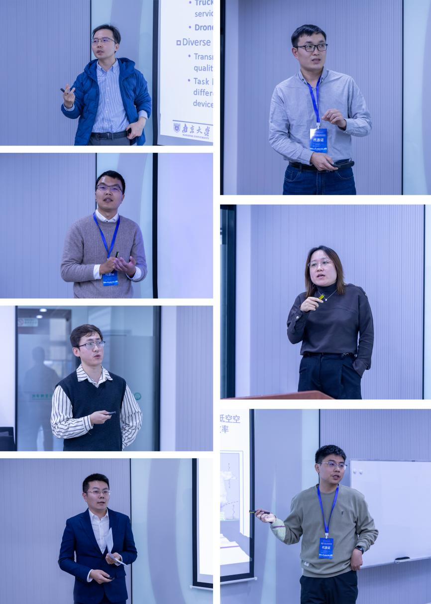 报告环节,南京大学王正礼副教授作了题为“面向巡检和配送任务的车辆-无人机协同优化研究”的报告,东南大学曹奇助理研究员分享了“空地协同感知下的全时空交通流重构”的研究成果,香港理工大学张宏刚博士后介绍了“陆空一体化多模式交通网络设计”的最新进展,我校陈晨副教授作了题为“基于数字孪生的智能无人机集群协同研究”的报告,p站 董文杰老师作了题为“极少故障数据下产品可靠性增长试验管理”的报告,中国汽车技术研究中心蔡雪研究员分享了“面向低空安全的新一代电池力学感知与智能管理技术”的研究,南京大学王兴博士后作了题为“基于监控相机传感网的低空气象高分辨率智能感知方法”的报告。