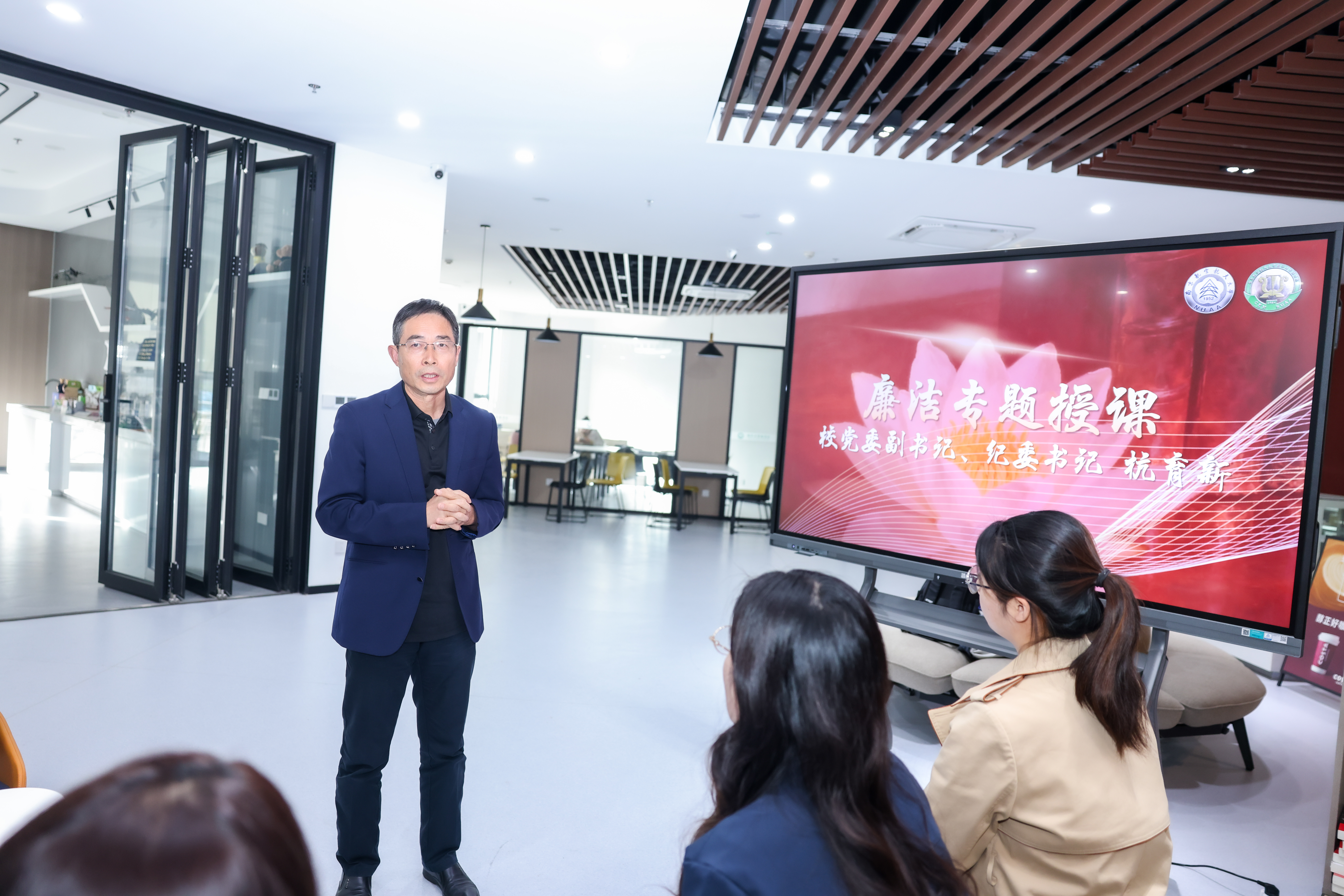 在“廉洁思想共鸣”环节,现场学生积极提问,“班级事务如何处理好人情关系做到公平公正公开”“对于学生来说,廉洁的边界在哪里”等,杭育新与同学们开展了深入交流。