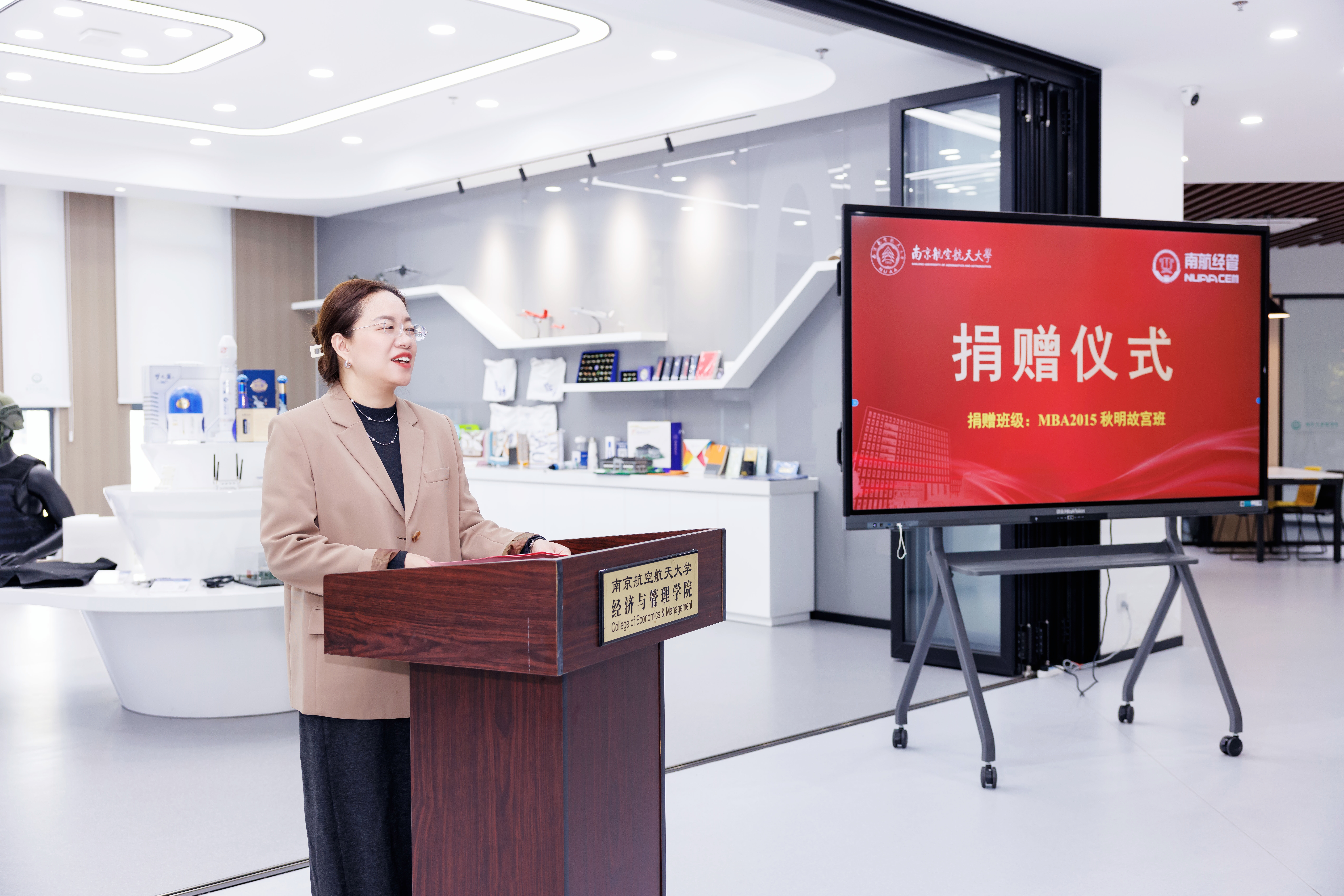胡苹副书记代表学院热烈欢迎校友返校。她指出,校友们的爱心捐赠不仅是一份物质资助,更是一份精神传承,体现了南航学子对母校的涓涓情意。