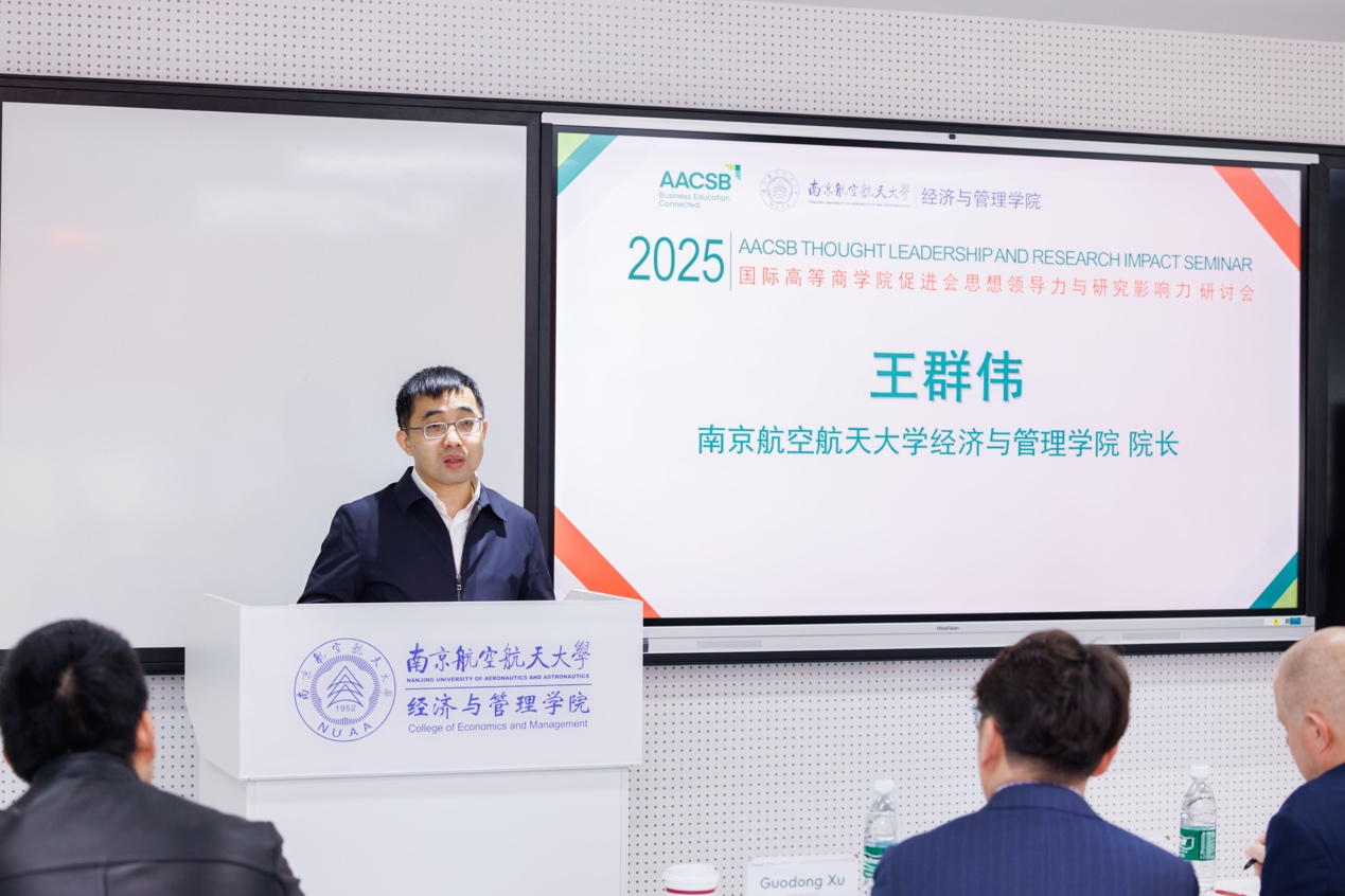 研讨会开幕式由p站 副院长周志鹏主持,院长王群伟代表学院致欢迎词。王群伟院长首先对各位嘉宾的到来表示热烈欢迎,并介绍了南航及p站 的发展历程与学科特色。近期,学院召开了第五次党员代表大会,谋划学院“十五五”乃至更长时期的发展,确立 “建设特色鲜明的世界一流经济管理学院”办学愿景目标、“三步走”战略安排、“四个统筹”发展原则和六大建设任务,对“办一所什么样的学院”和“怎样办这样的学院”做出了更加系统的谋划布局。王群伟院长表示,AACSB认证是全球最具声誉的商学院认证之一,代表着商科教育领域的最高质量水准,更是商学院迈向国际化、提升治理水平的重要标志。学院高度重视AACSB国际认证工作,将其视为推动学院国际化发展、深化校际合作交流的战略举措。本次研讨会为AACSB认证推进院校的同仁搭建了优质的学习交流平台,希望大家齐聚一堂,汇聚智慧、分享经验、互鉴共进,为认证工作的扎实推进注入新的动力。