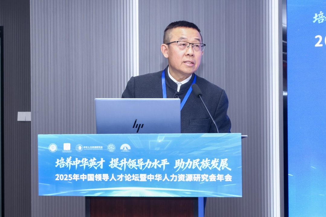 中国人才研究会副会长、北京大学人力资源开发与管理研究中心创始主任萧鸣政教授代表主办方致辞,并作题为《全面提高干部队伍现代化建设本领》的首场主旨报告。他指出,他强调,面对新形势新任务,必须将干部队伍能力建设摆在突出位置,面对中国式现代化的七大特征与党的二十大及二十届四中全会对干部能力的新要求,必须系统构建干部现代化建设本领的内涵与结构模型,并从管理过程、内容维度与实践需要等多方面出发,全面设计提升路径。