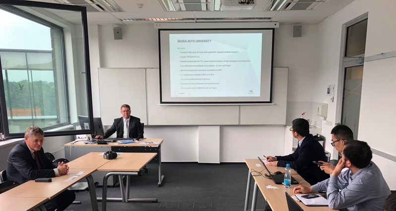 On behalf of ŠKODA AUTO University, President Pavel Mertlík welcomed Vice President Deng Jing and his delegation to introduce the history of ŠKODA AUTO University and related majors, including marketing, financial management, operations/logistics/quality management, and human resources management. ŠKODA AUTO University is a university founded by Skoda Auto. It became a member of Erasmus+Programme of the European Union in 2005 and is one of the Czech universities with international strength. The ŠKODA AUTO University Diploma has international “transparency” and fair academic and professional accreditation.