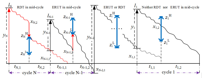 Figure.  Timeline of Multi-Replenishment Cycles with Mid-Cycle Adjustments