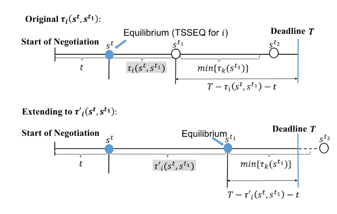 Fig. 2. Evolution to equilibrium before and after extending Time of Move τ_i (s^t,s^(t_1 ))