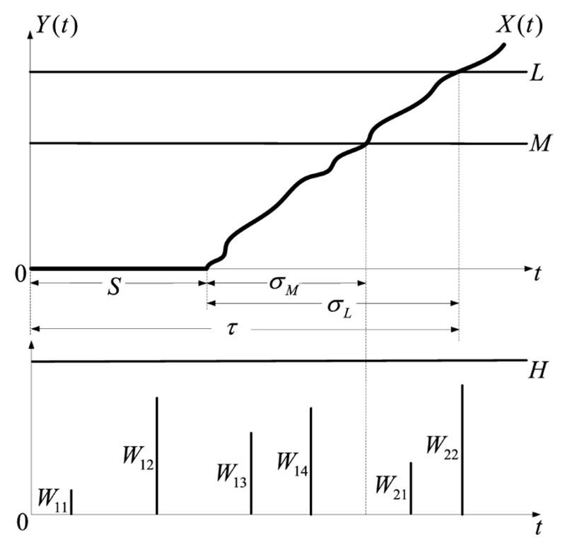 Amongst the multiple factors and mechanisms that contribute to system failure in actual engineering phenomena, internal performance deterioration such as wear, erosion, corrosion, and fatigue and random shock damages from the external environments are intensively regarded as the two main prevalent causes. The degradation process is always continuous and gradual while external shocks often arrive discretely and abruptly. For many products with the characteristic of high reliability and long lifetime in industry, the degradation process often occurs after a certain delay and correspondingly, there exists some degradation initiation time or degradation onset time, which is a degradation-free period for the system.